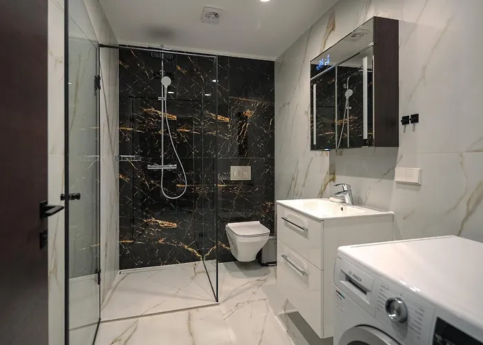 1 kambario butas „Kaunas City Center Deluxe“ yra 15 minučių kelio pėsčiomis iki „Žalgirio arenos“. Butas įrengtas su visa virtuve, kurioje yra įrengimai, tokie kaip šaldytuvai, virdulys ir orkaitė.